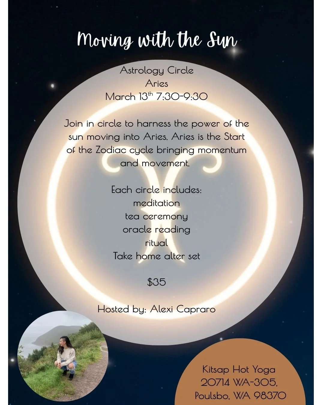 Each circle includes meditation, tea offerings, oracle readings, community and a ritual activity to embody Aries. Learn about the different aspects during this transits and the houses specific to your chart that might influence your focus.